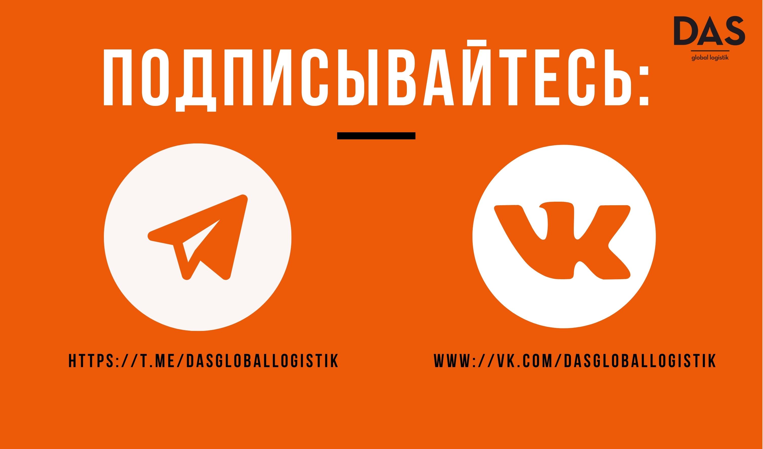 Мы стали еще ближе! Теперь dasgloballogistik есть в соц.сети Вконтакте и Telegram.