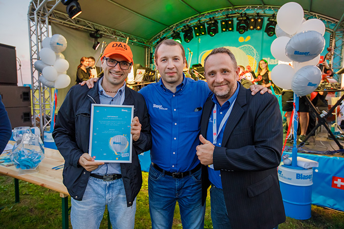 Кульминацией фестиваля «Blaser Open Air» стало захватывающее зрелище летящих воздушных шаров, в рамках которого состоялось дружеское соревнование между командами Швейцарии и России. Среди участников мероприятия были разыграны сертификаты на полет на воздушном шаре, в числе победителей была и компания ДАС ГЛОБАЛ ЛОДЖИСТИК.